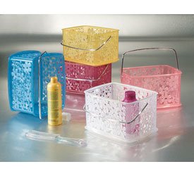 Gather up those odds and ends that inevitably become clutter in the bedroom bathroom or craft room and store them in a funky Blumz Flower Storage Basket. These storage bins are available in four vibrant colors and feature a stackable design to help you organize any space in your home. Constructed of durable plastic the bath baskets can handle the wear and tear of daily use and are also simple to keep clean. The open design of the flower print sides and drain holes near each corner of the base make the decorative storage baskets perfect for holding toiletries and bath accessories. A heavy duty chrome handle makes it simple to lift and carry the stackable bin and can be removed for easy cleaning. The convenient stackable design allows you to safely store the baskets on top of one another and conserve storage space in your vanity or closet. Available in four cool colors such as lemon and raspberry you can mix and match basket colors to accommodate your personality and decor. Offeri