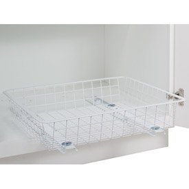 These Mounted Basket Glides allow you to install any standard depth Stor-Drawer basket into existing cabinetry to become a versatile storage drawer. The drawer glides are sold as a set of two to accommodate a single basket include wood screws for secure installation and feature heavy-duty construction to provide a lifetime of reliable use. Pictured basket is Sold Separately! Stor-Drawer Wire Basket Glides Features Solid steel construction with a white epoxy finish. Commercial grade drawer slides are smooth and quiet and will provide years of reliable use. Woks with any standard depth size Stor-Drawer wire basket. Includes hardware and instructions for simple installation into existing cabinet or onto other solid wood surfaces at least 18 1/2" deep. Storage basket is securely attached in four spots for optimum stability. Helps add a convenient storage drawer to base cabinet spaces or the cluttered space beneath a sink. Also efficient for organizing tools and parts on storag