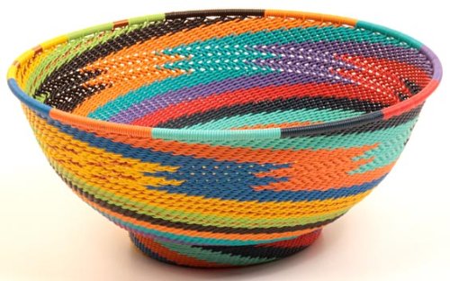 You will receive a basket of these colors but with a different pattern because every baskets is uniquely handwoven and differs in design. The past and the future are fused together in the creation of this beautiful basket, Zulu weavers have taken the intricate designs and incredible craftsmanship of their natural fiber baskets, and turned them into brightly-colored art from plastic-coated wire. Mesmerizing designs and vibrant colors are a hallmark of this functional art. Wash gently with warm soapy water.These are incredible, intricately designed baskets, some using accents of bare copper wire.