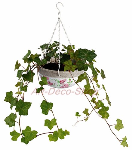 Our beautiful aged ceramic collection is perfect for adding a beautiful touch to any patio, porch or garden. It is new ceramic but aged in a way that resembles a newly dug archaeological treasure. A collection with unexpected ceramic articles for in the garden. A beautiful aged ceramic hanging basket in our new elegant rose print is a beautiful accent for any indoor or outdoor area.